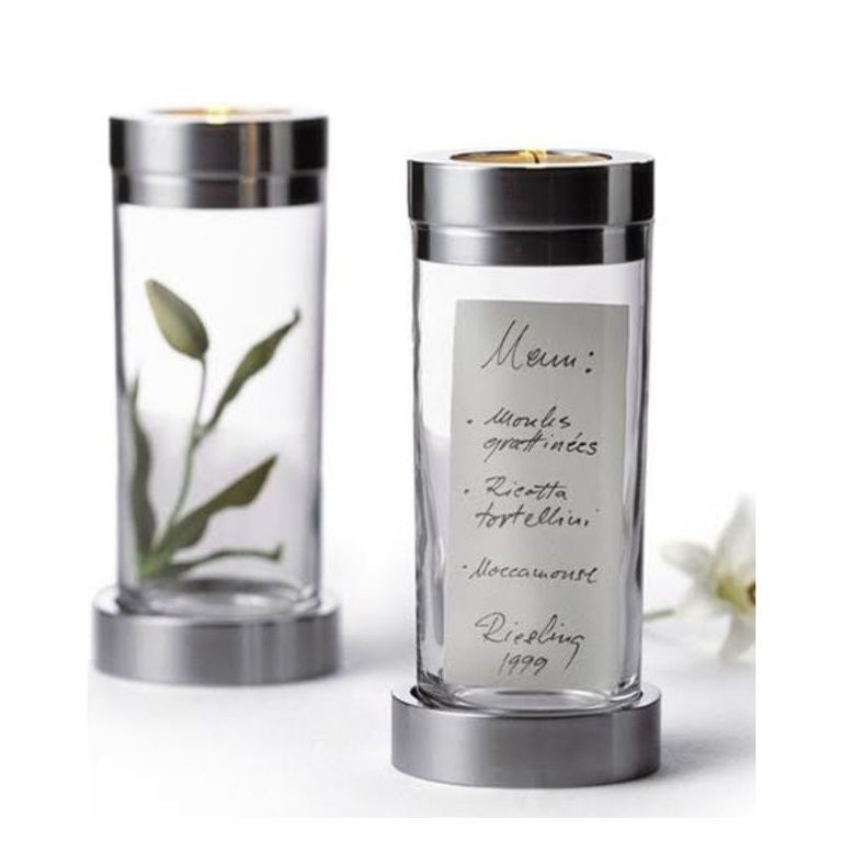 Използвай своя собствен творчество с тази галерия Свещник Menu! Можете да се определи съдържанието на този свещник именно себе си, така че тя да бъде поберат си настроение и декор. Чифт свежи цветя, потопени във вода, изсушена роза пъпки, камъни, черупки и така нататък. Използвайте въображението си и да създадете свой личен проект!