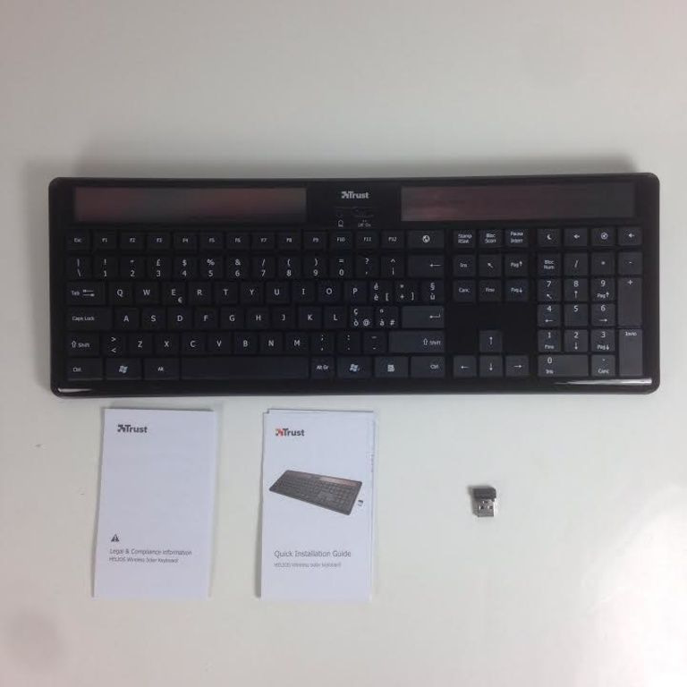 Безжична клавиатура със слънчеви клетки; Зареждането се извършва от слънчева светлина или на дневна светлина, така че не са необходими батерии